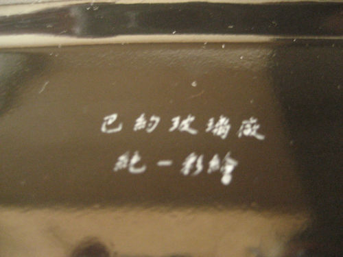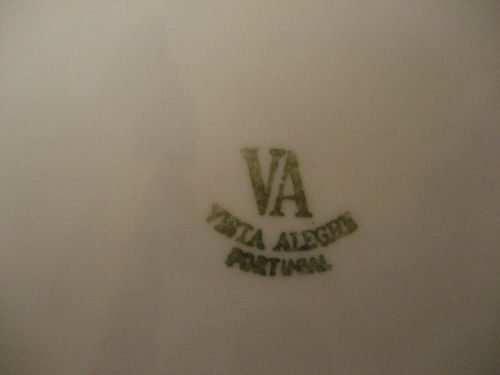 Bonita terrina Vista Alegre grande com uma decoração oriental e inscrições em chinês a dourado no fundo da travessa.