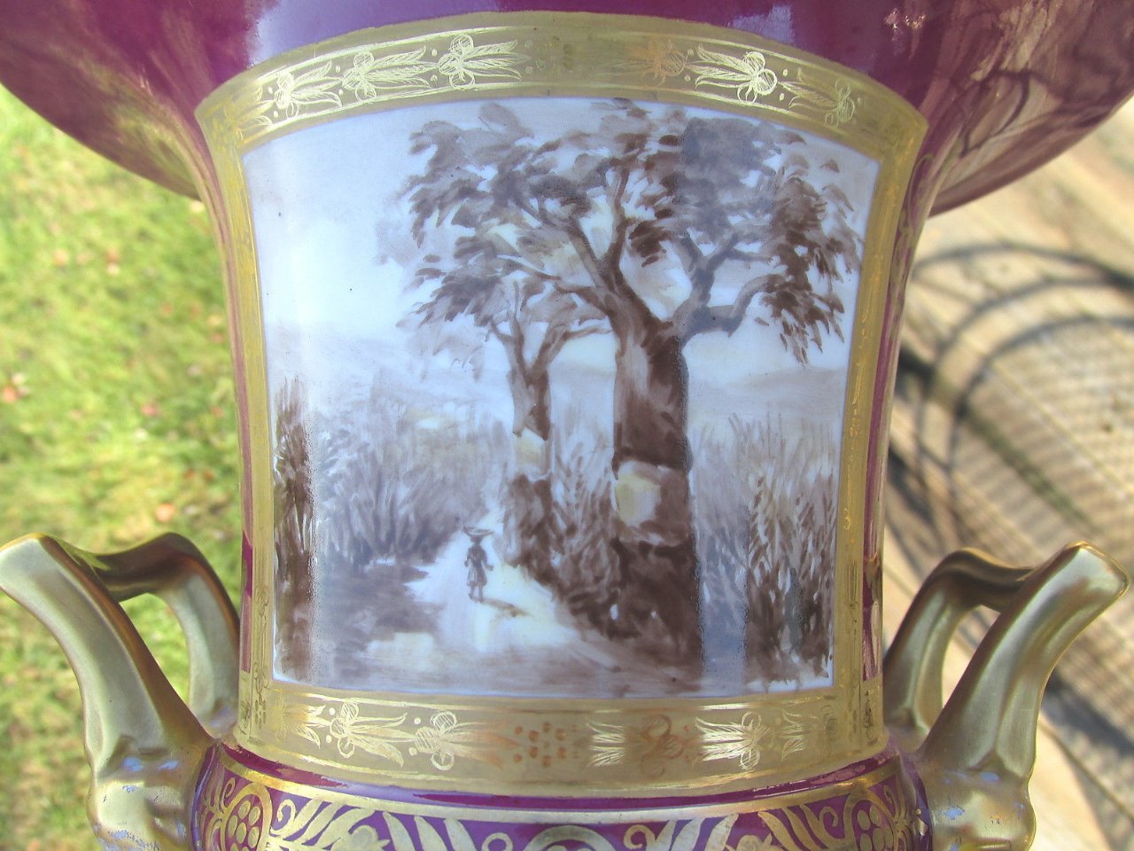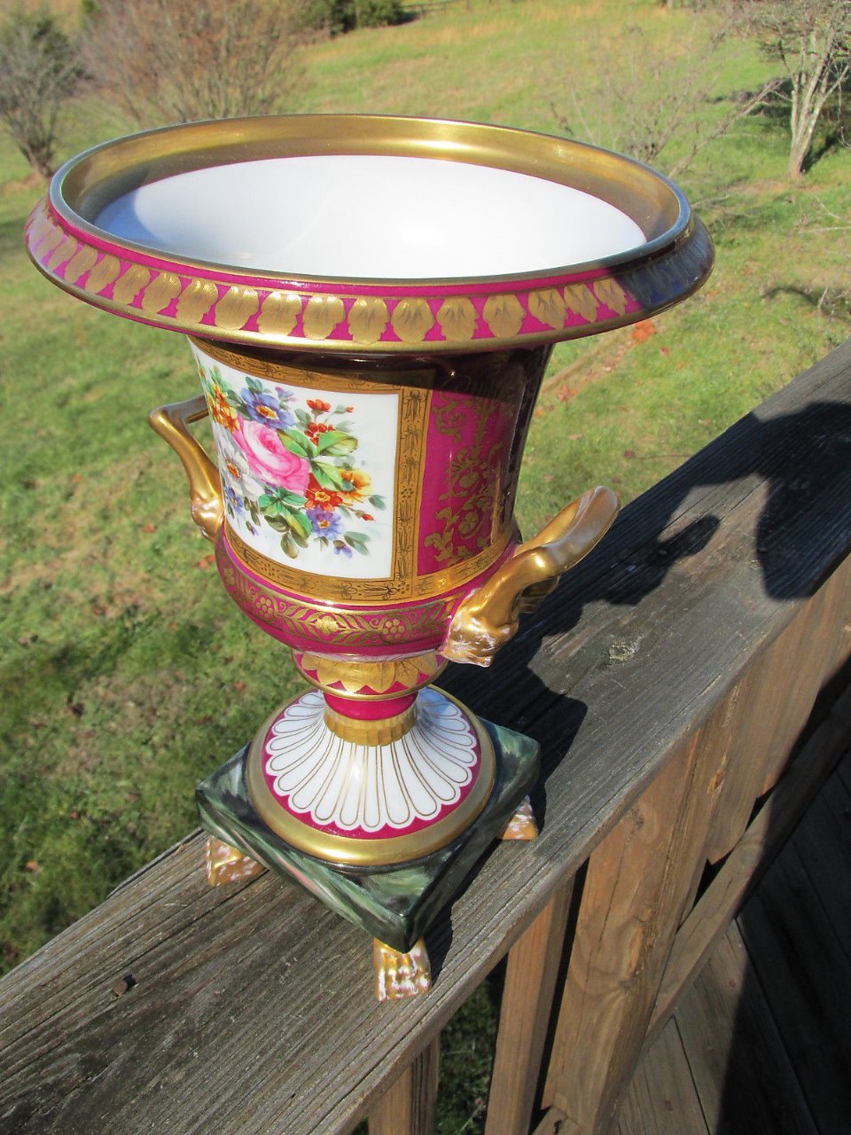 Rara urna com carranca e pés em porcelana da Vista Alegre INTEGRALMENTE PINTADA À MÃO.